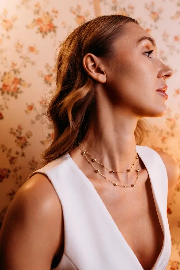 Колье двойное "QUIET LUXURY" с шарами и алмазными гранями в золочении