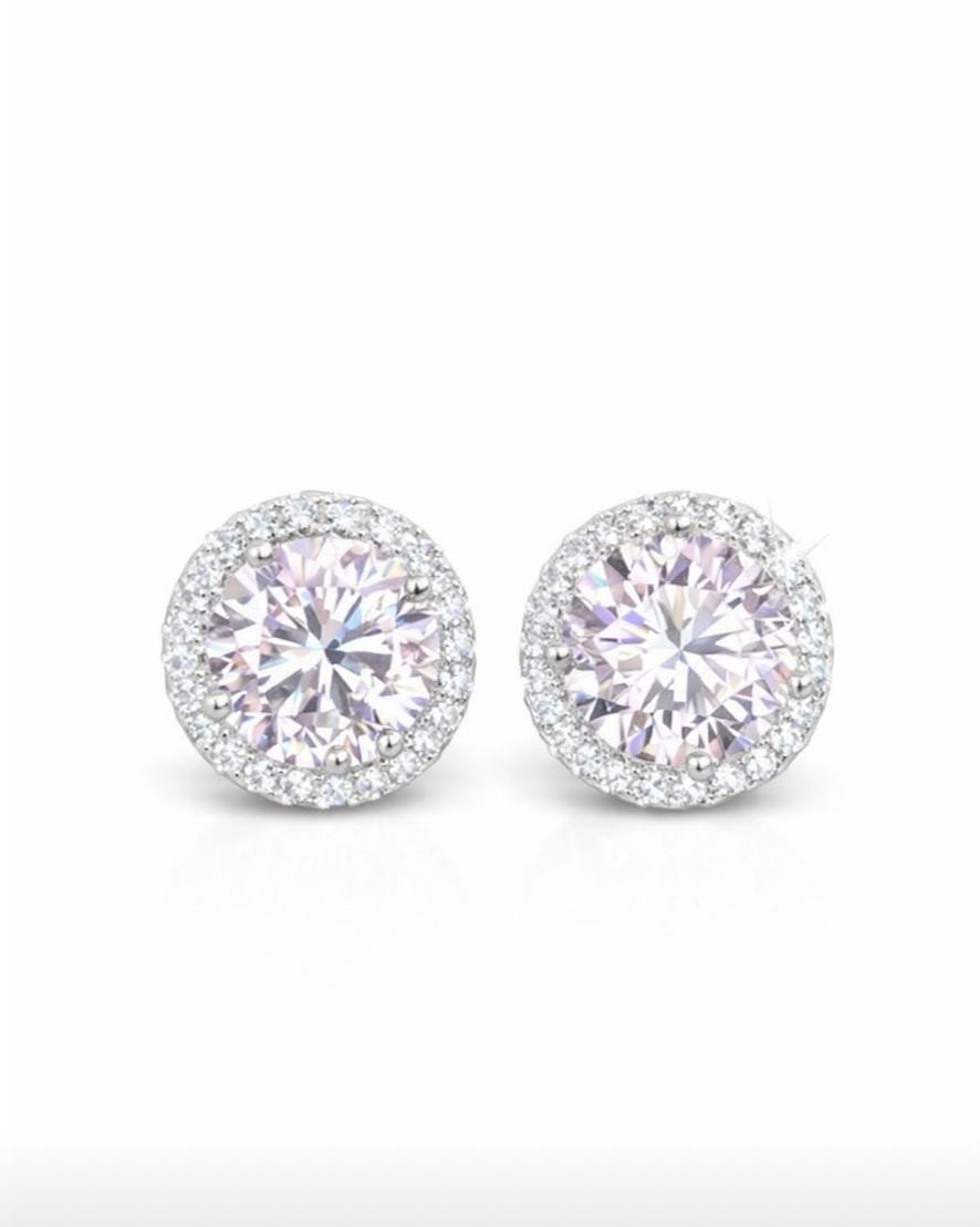 Круглые серьги - пусеты "DIVA" с розовым цирконием