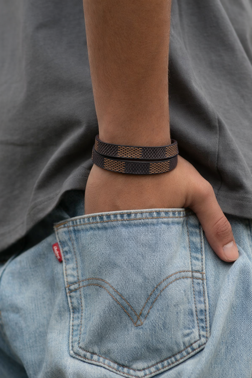 Мужской браслет двойной коричневый