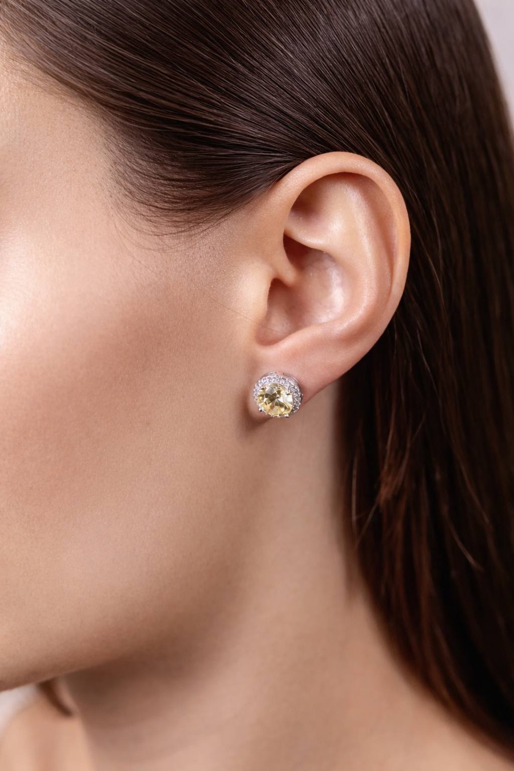 Серьги - пусеты "DIVA" с жёлтым цирконием